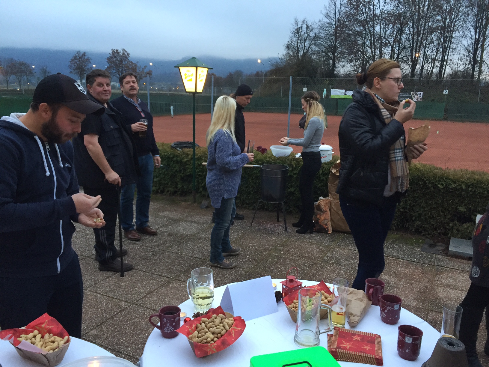 Alle Mitglieder waren eingeladen und bekamen vom TC-W Christkindl Speis und Trank geschenkt, das liebevoll vom Tenniscenter Rath zubereitet wurde. Gemütliche Weihnachtsmusik, Glühwein und gebratenen Maroni rundeten die Weihnachtsfeier ab. Die Mitglieder genossen das Ambiente, unterhielten sich köstlich und ließen das erfolgreiche Tennisjahr gemeinsam ausklingen.